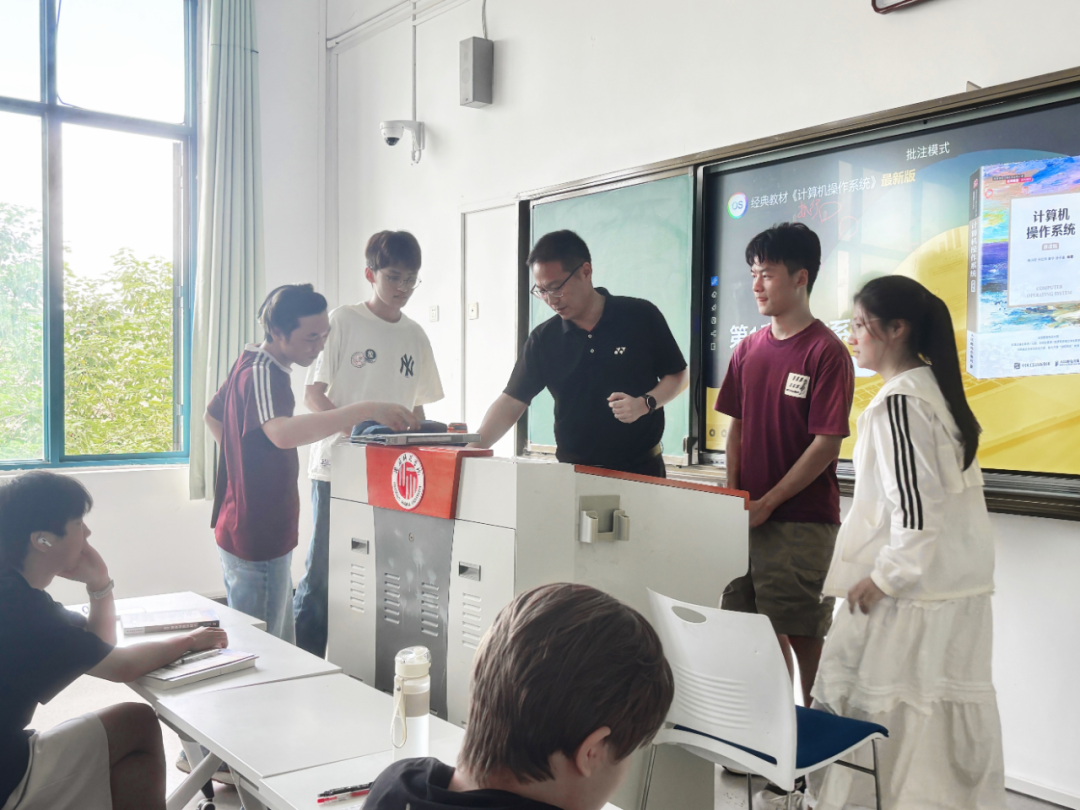上课前,同学们齐祝“老师节日快乐”“谢谢您的付出”,暖意漫开,老师们面露欣慰。随后,趣味互动登场,小游戏拂去老师们的疲惫,师生笑声相融,化伴并肩,笑声轻荡。