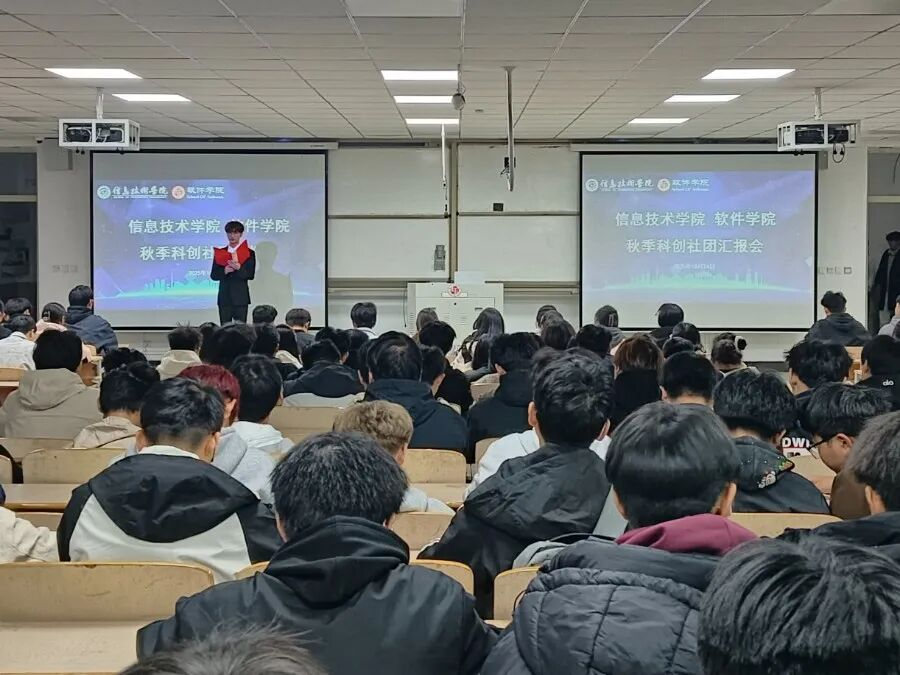 活动伊始,特邀专家围绕信息技术专业领域前沿动态展开分享,结合具体实例分析行业发展趋势,为同学们提供专业学习指导与建议。随后的汇报展演环节,社团成员紧扣专业特色,充分展示自身优势,通过精心准备与演示,全面呈现了各社团的独特魅力与蓬勃朝气。汇报过程中,各社团负责人不仅介绍了社团发展情况与特色活动,鼓励新生积极探索、找到兴趣方向;还详细分享了社团组织参与的各类竞赛及取得的优异成绩,充分展现了社团取得的成绩与综合实力。